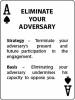 For the process oriented, the delineation strategies provides a means to create a strategic flow chart with the possibility of diagram options should a preceding strategy work or fail. People who move in this direction tend to put the cards in baseball card holder sleeves and hand them on a wall. The conciseness of the strategies also means that during an action, for example a negotiation, you can code and communicate a shift in strategy on the fly the same way a quarterback in American football can call an audible play change from the line. (You could very literally keep an Ace up your sleeve.)