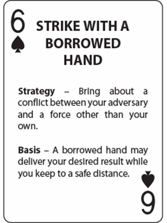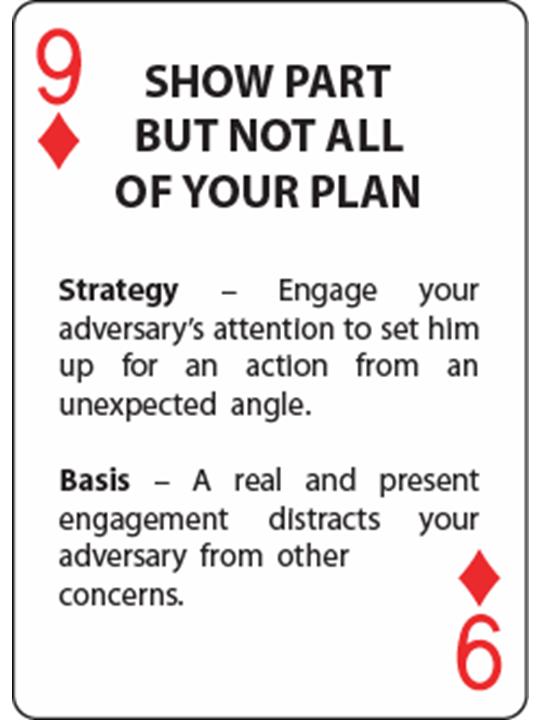 The following text links the Art of War: Sun Tzu Strategy Card Deck to the Art of War.  Each playing card in the Art of War: Sun Tzu Strategy Card Deck represents a derivative of several ideas presented in Sun Tzu on the Art of War.  The purpose of the cards is to offer ways to put Sun Tzu's ideas into actual practice.  The following text of the Art of War links Sun Tzu's ideas to cards that commonly, but not exclusively, provide actions by which to carry those ideas out or take advantage of their effect